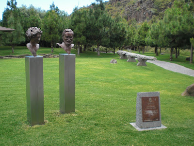 Un hermoso palmeral de Phoenix canariensis se encuentra en la entrada del Jardín Canario. La Plaza lleva el nombre de Matias Vega Guerra